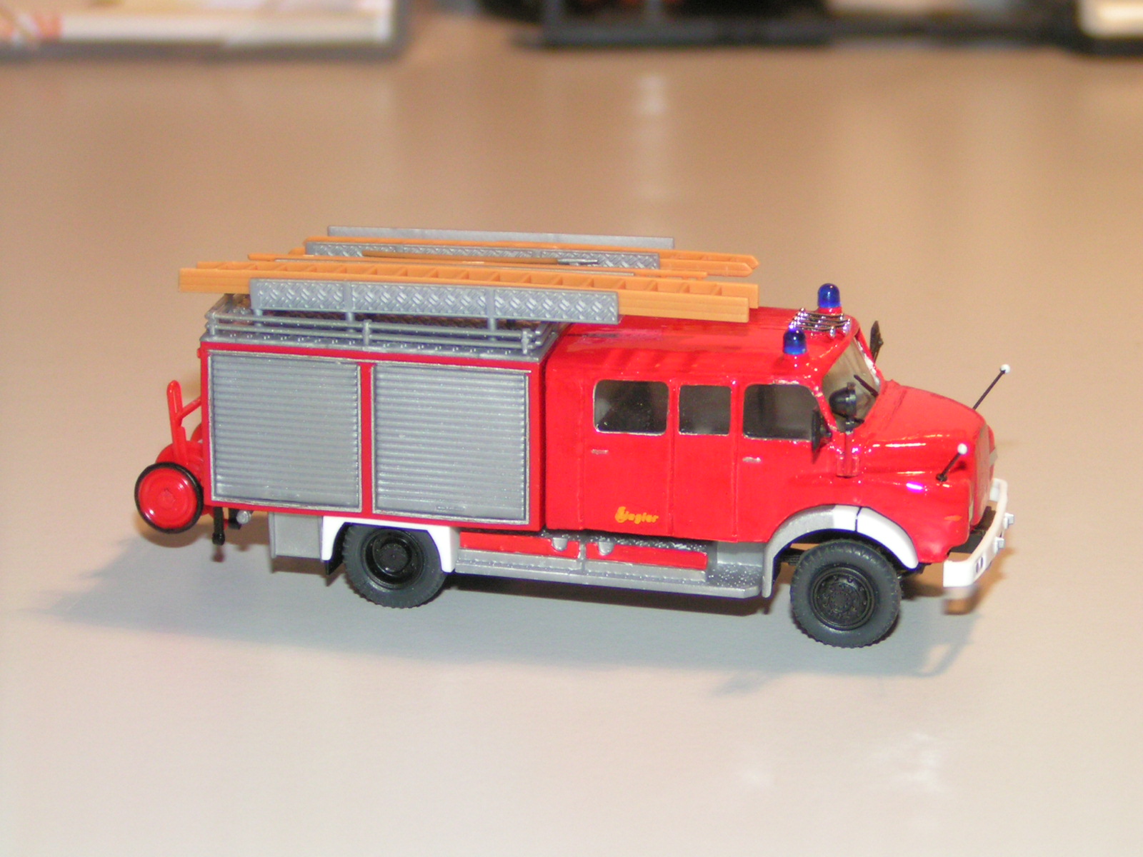 da ich aktuell recht wenig neues produziere, wollte ich hier mal was älteres aus meiner Bastelstube zum Thema "MAN-Hauber" beitragen. Vor einigen Jahren hatte ich mir den MEK-Bausatz des LF 16 auf MAN 11.168 HA-LF mit Ziegler-Aufbau zugelegt. Das Ganze wurde dann "mehr oder weniger" aus dem Karton gebaut - lediglich die Kabine war etwas zu kurz und wurde mit Polystyrol nach hinten verlängert und entsprechend verspachtelt. Ansonsten per Hand (!)