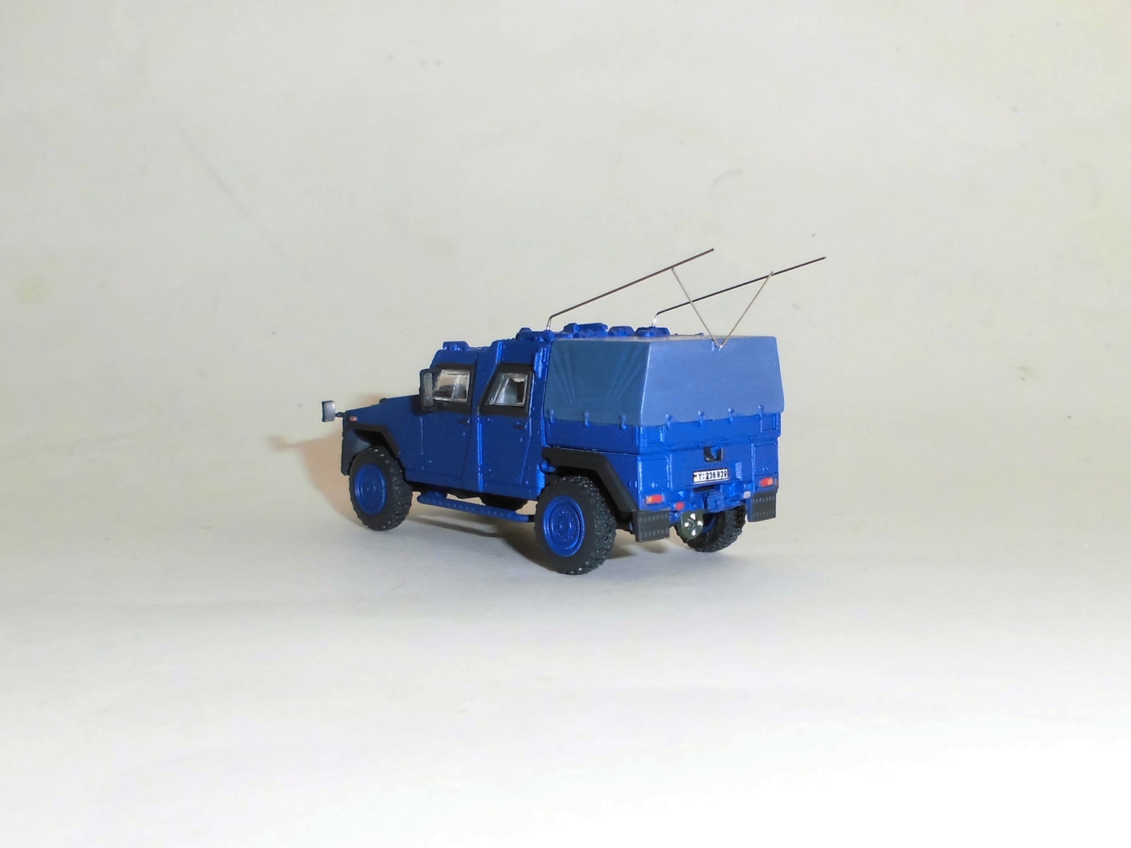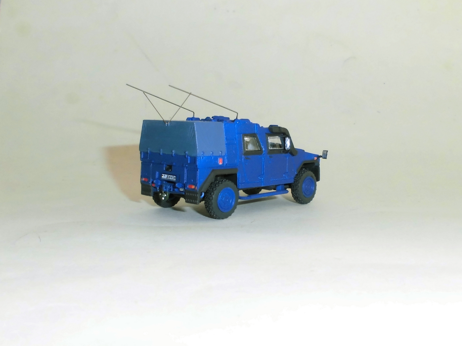 Modellbau nach Vorbild überkommt mich ja nicht so oft, aber die Tage war es mal wieder soweit. Ergebnis ist ein eigentlich militärisches Fahrzeug in THW-Blau im Polizeieinsatz.