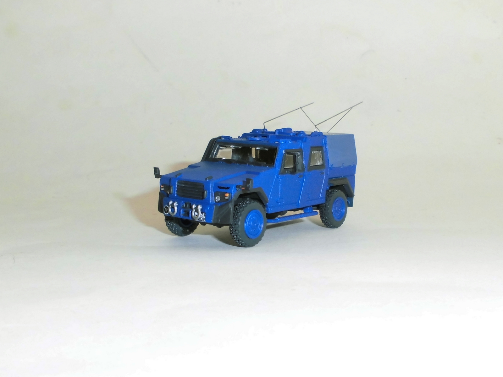 Als Großserienbausatz wird der Eagle IV von Arsenal-M / Armour87 unter anderem auch in zwei Varianten der Bundespolizei angeboten. Ich habe mich für die Variante entschieden, die die Fahrzeuge im Afghanistan-Einsatz darstellt (Art.-Nr. 211200151). Der Bausatz wurde im Großen und Ganzen aus der Packung gebaut, lackiert und mit ein paar Kleinigkeiten ergänzt. Das Kennzeichen habe ich dem beiliegenden Decalsatz entnommen und verlasse mich dabei auf die Recherche von Thomas Fichtl, denn die mir bekannten Fotos aus dem Einsatz in Afghanistan zeigen die Fahrzeuge komplett ohne Kennzeichen - vielleicht aus Geheimhaltungsgründen?