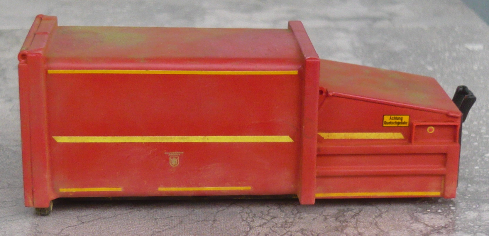 Derzeit werden von Herpa auch zwei einzelne Pressmüllcontainer angeboten. Einer davon sogar in Rot.