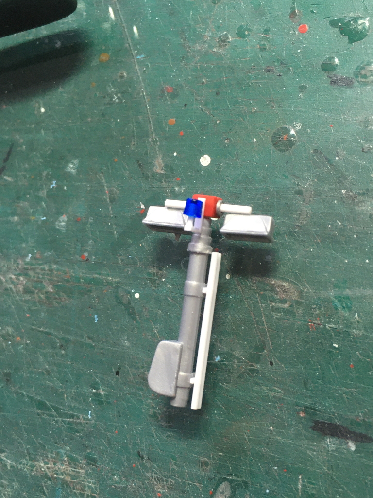 Vor dem ankleben an die ebenfalls vorlackierten Jalousien legte ich seitlich je einen dünnen, ca. 0,25 mm x 0,3 mm schwarzen Evergreen Streifen ein.