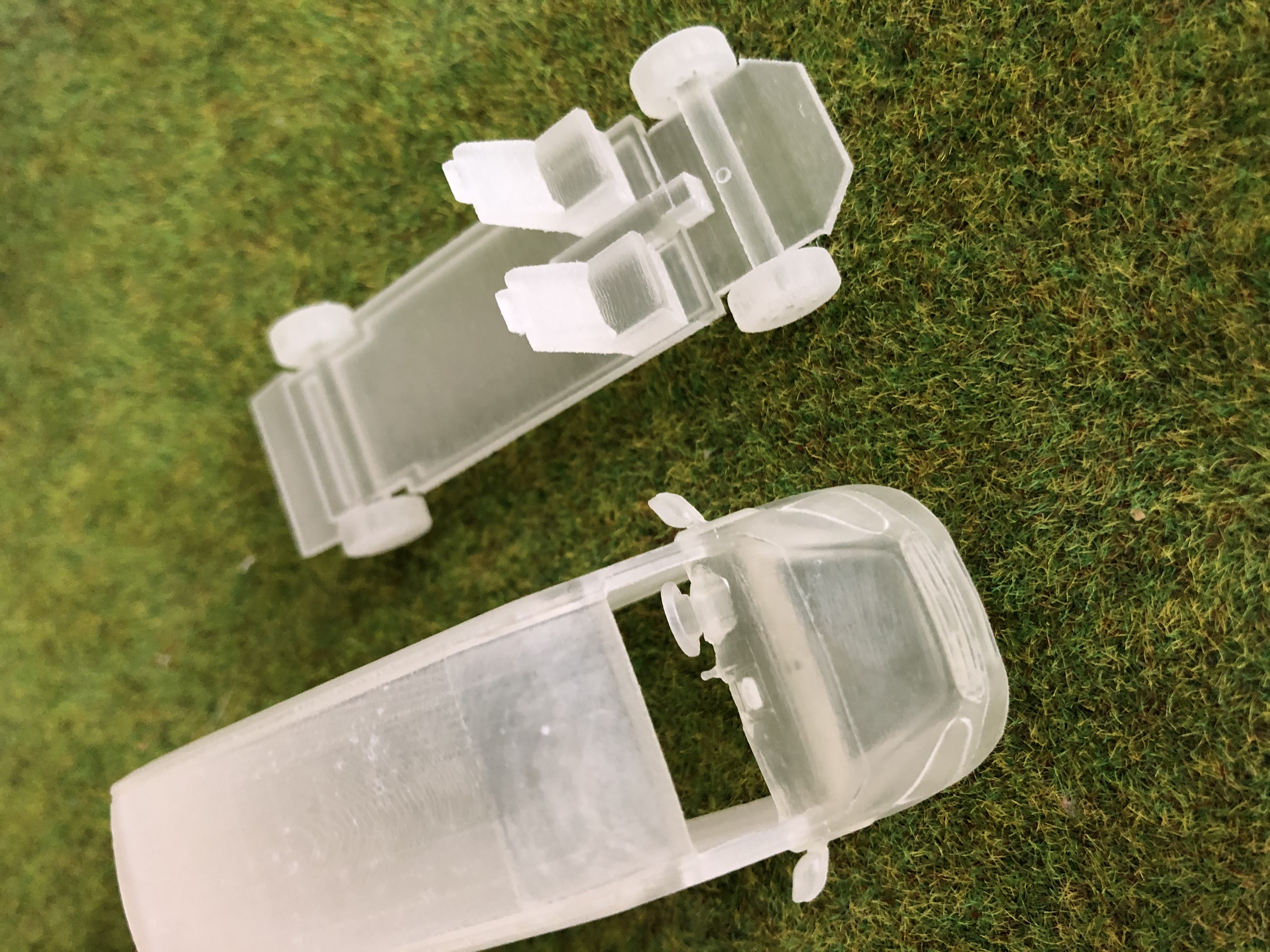Allerdings habe ich keinen Schimmer, wie man da eine Windschutzscheibe rein kriegen soll. Und kann es sein, dass auf der Motorhaube die Lüftungsöffnungen fehlen, ist so schwer auf den Bildern zu erkennen (und die Zeichnung bei Shapeways ist auch keine Hilfe)?