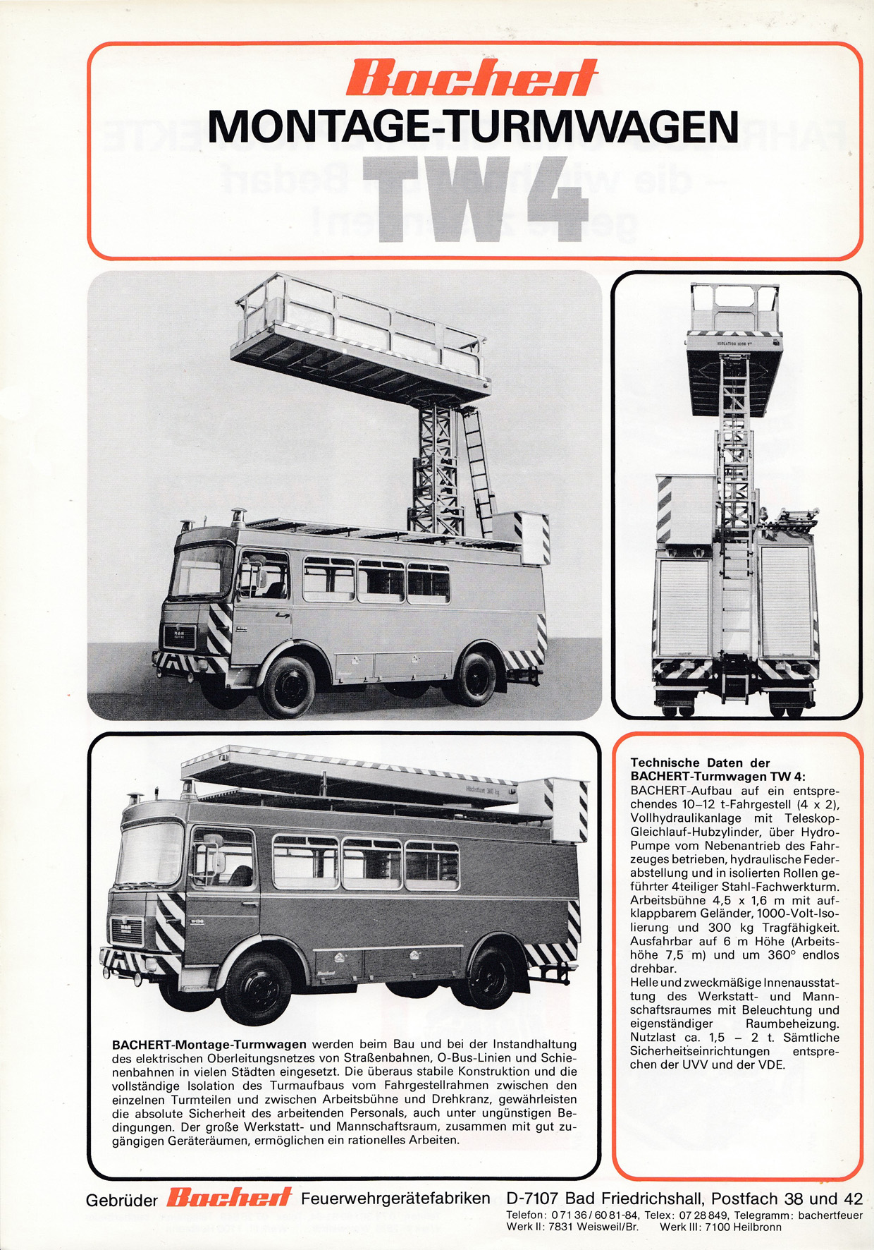 Auf MAN Fahrgestell gab es noch die im Prospekt klein abgebildete MAN 14.192F, nur als Vorführfahrzeugfg von Bachert .