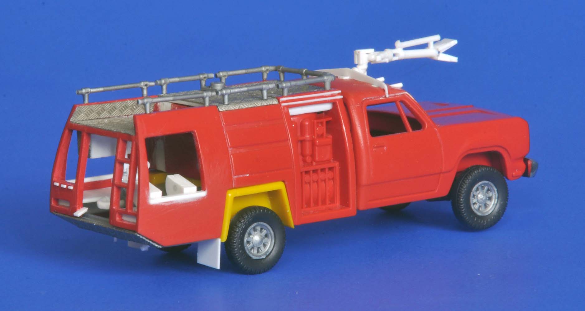 Der Hamburger Cheetah hat im Vergleich zum Kölner (siehe entsprechenden Beitrag), schon einige Änderungen mehr. Zum ersten hatte dieser eine etwas andere Kühlergrill-Variante, auch hier dargestellt durch ein Decal. Werfer und Dachbeladung sind ähnlich Köln. Die meisten Änderungen betreffen hier das Heck. Rechts hatte das Hamburger VLF zwei Schnellangriffe mit Rollschläuchen und links eine Halon-Löschanlage. Außerdem fehlte hier wie bei allen anderen der links unten angeordnete kleine Geräteraum.