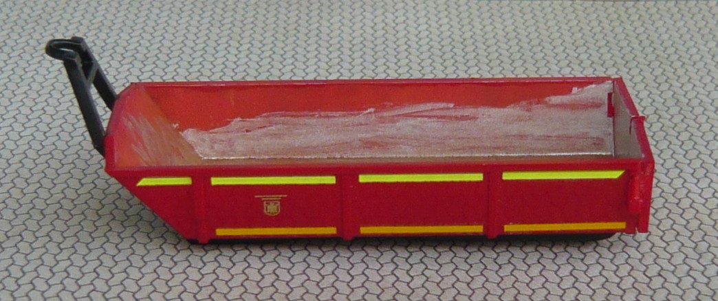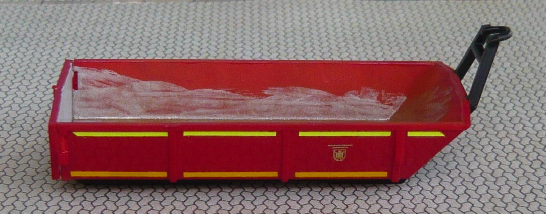 Vielleicht hättest Du der Mulde außen noch etwas Gebrauchtspuren hinterlassen können. Immerhin hat sie ja sicherlich schon einige Einsätze mitgemacht :!: