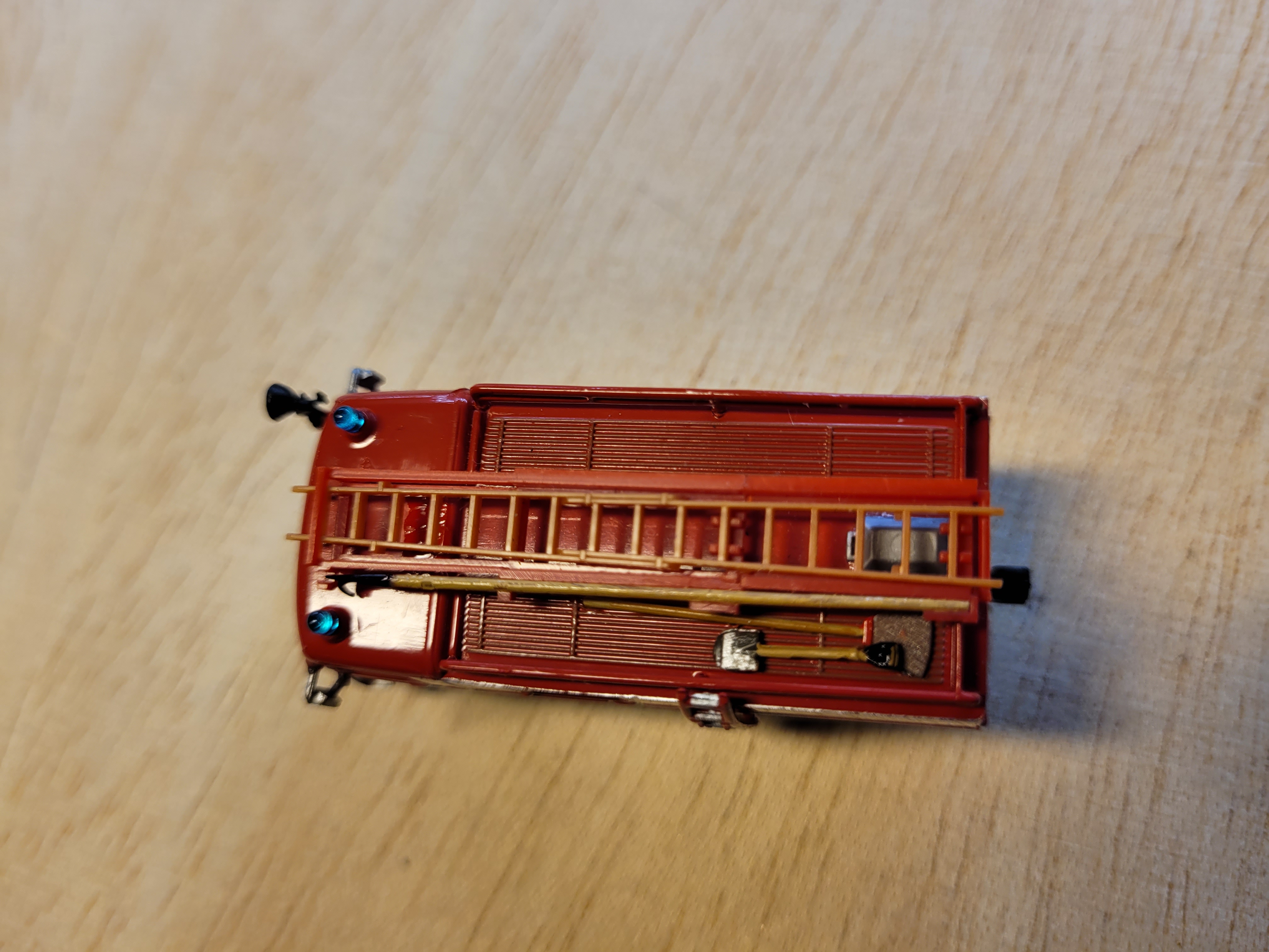 Die Basis von Brekina finde ich sehr ordentlich - nur die Dachbeladung im gefiel mir gar nicht, daher wurde erstmal die Anstreicher-Leiter und die Saugschäuche abgebaut. Die riesigen Löcher wurden vorne mit Bondic zugeklebt und hinten mit der neuen Dachbeladung versteckt.