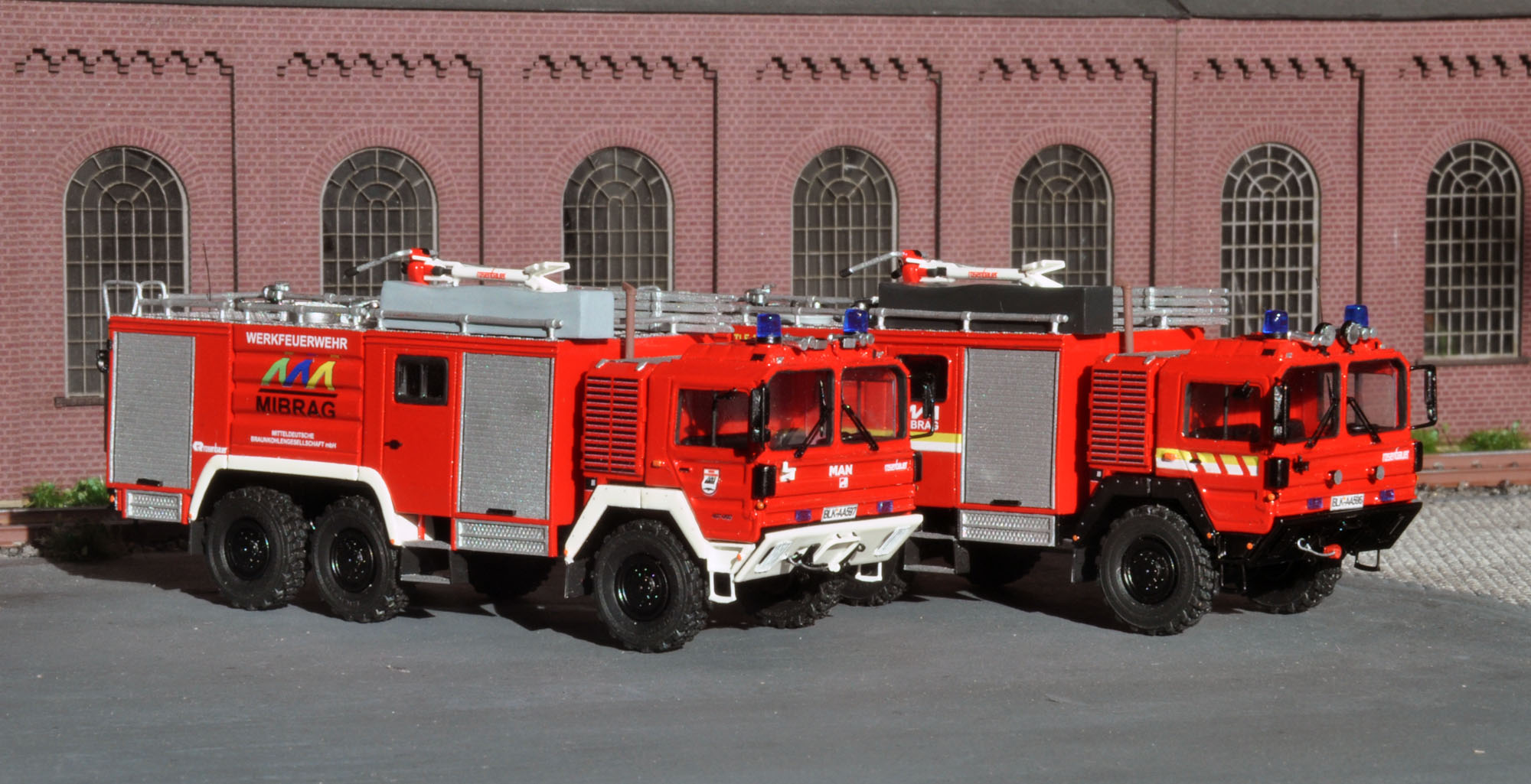 Abseits der wirklich gelungenen Modelle ein Satz zu den Originalen, bzw. vielmehr zum Original. Mittlerweile befindet sich bei der MIBRAG nur noch eines der TLF im Einsatz und zwar das im Vereinigten Schleenhain. Das Fahrzeug aus Profen ist zwar noch physisch anwesend, wurde aber aufgrund eines technischen Defekts außer Dienst gestellt.Dirk Wieczorek hat geschrieben:[...] habe ich das Fahrzeug aus Profen im Zustand nach der Überholung gebaut und das zweite aus Schleenhain im Originalzustand.[...]
