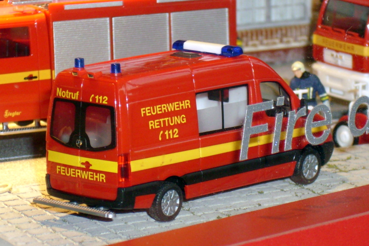 Rietze bringt wiedermal einige T5 in verschiedenen Berdruckungsvarianten raus. Auffällig ist bei einem Vorbild sind die ich schätze mal Delfis Blaulichter (Art.Nr. 51696) allerdings kenn ich mich da nicht so aus. Einen MAN LE 2000 als Löschfahrzeug, und diverse Zurüstteile, wie HELLA RTK6, Hänsch DBS 2000, Lichtmast, etc.