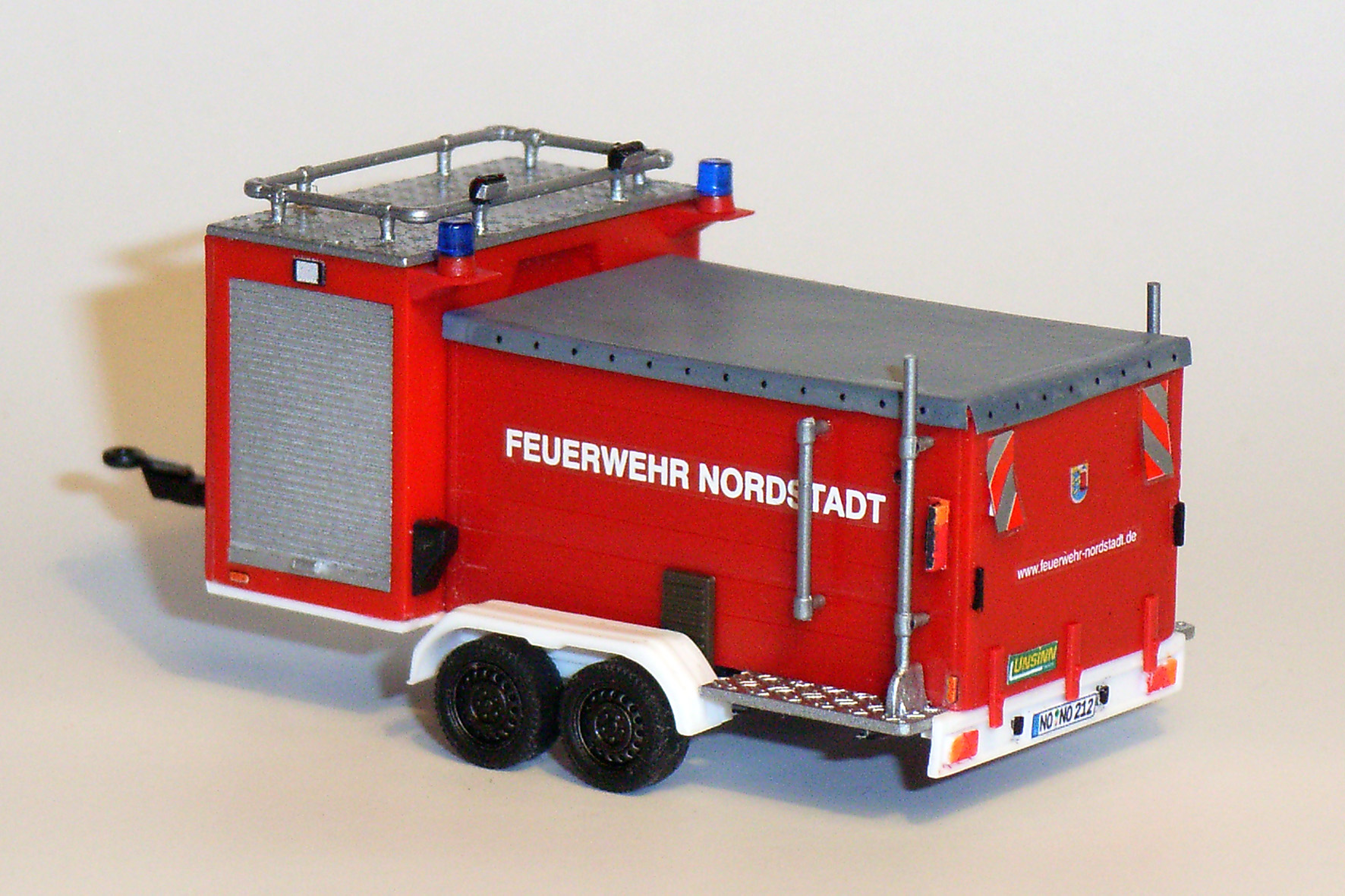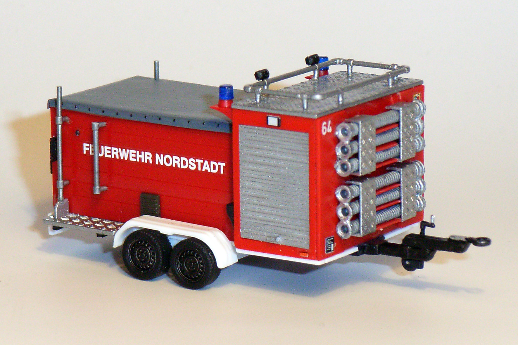 Über das Konzept kann man wie bei fast allem geteilter Meinung sein, aber ohne zu sehr in Vorbild-OT zu gehen, muss ich sagen, ich finde das ziemlich gut, gerade auch für kleinere Wehren, wie Du schon geschrieben hast. Unsere Wehr hat einen SW 2000 (auf MAN/VW, Aufbau Lentner; alle Schläuche sind in Körben verlastet und in zwei separaten Reihen jeweils untereinander verbunden). Vor einigen Jahren war ich mal dabei, wie von dem Wagen aus ein paar Meter Schlauch ausgelegt wurden; da es um eine leichte Linkskurve ging, ist gleich mal der Schlauch auf der linken Seite ganz außen von der Ladebordwand ins Eck gerutscht, da könnte sich der Schlauch an der LBW-Kante aufreiben. Der Anhänger steht hingegen in Kurven nicht ganz so schräg mit seinem Heck wie der Lkw, da passiert das vielleicht nicht ganz so schnell. Außerdem stand der FW-Kamerad auch ziemlich abenteuerlich "gesichert" auf der Pritsche; ich müsste vielleicht das Papierfoto dazu mal einscannen. Ach ja, Kommunikation zwischen vorne und hinten: Da gab es zwar was auf der Pritsche bzw. am Spriegel, aber erst vor ganz wenigen Jahren wurde in Eigenarbeit von einem Mitglied der Wehr eine wirklich brauchbare, funktionierende Gegensprechanlage eingebaut! Auch bei den Anhängern könnte man sowas mit aktueller Funktechnik auch sehr leicht und kostengünstig nachrüsten. Soooo viele Nachteile hat so ein Anhänger also gar nicht gegenüber einem "vollwertigen" SW...
