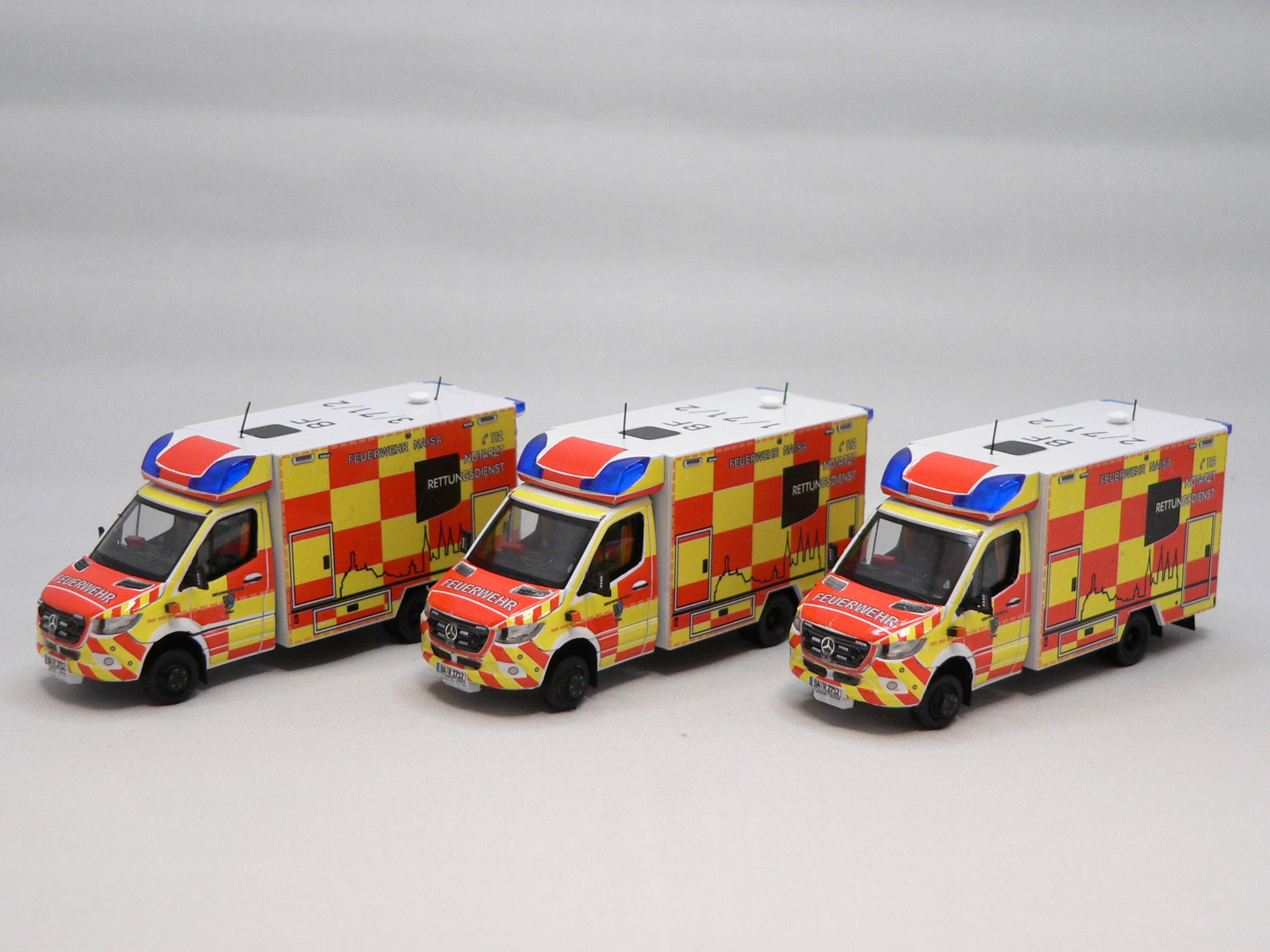 Herpa Sprinter 18 RTW Minikit, Decals von Markus und Decalkiste, Anbauteile aus der Bastelkiste, Spiegel aus dem 3d Drucker von einem Kollegen.