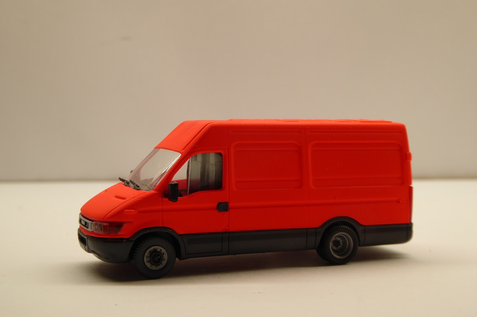Vom Modell wurde als erstes die Stoßstange samt Schneepflug entfernt. Als nächstes haben ich mir diverse Bilder bei BOS angeschaut und anschließend die vorhandene Pritsche in ihrer Länge um ca. 10mm gekürzt. Die angedeutete Ladebordwand war zu meiner Erleichterung nur punktuell mit der Plane verklebt, so das sie sich ohne Probleme entfernen ließ. Bei einer Stellprobe hatte ich für mich das Gefühl, es passt. Das abgetrennte Planenteil wurde dann an den Seiten ebenfalls gekürzt und wieder eingeklebt. Zum Schluss die "Ladebordwand" wieder angeklebt. Auf die Heckklappe konnte ich daher gut verzichten, weil diese verdeckt war und ein Fehlen nicht weiter auffällt. Die geänderte Pritsche habe ich abschließend wieder aufgesetzt und, da die Aufnahmepunkte sich durch das Kürzen verändert hatten, mit dem Fahrgestell fest verklebt.