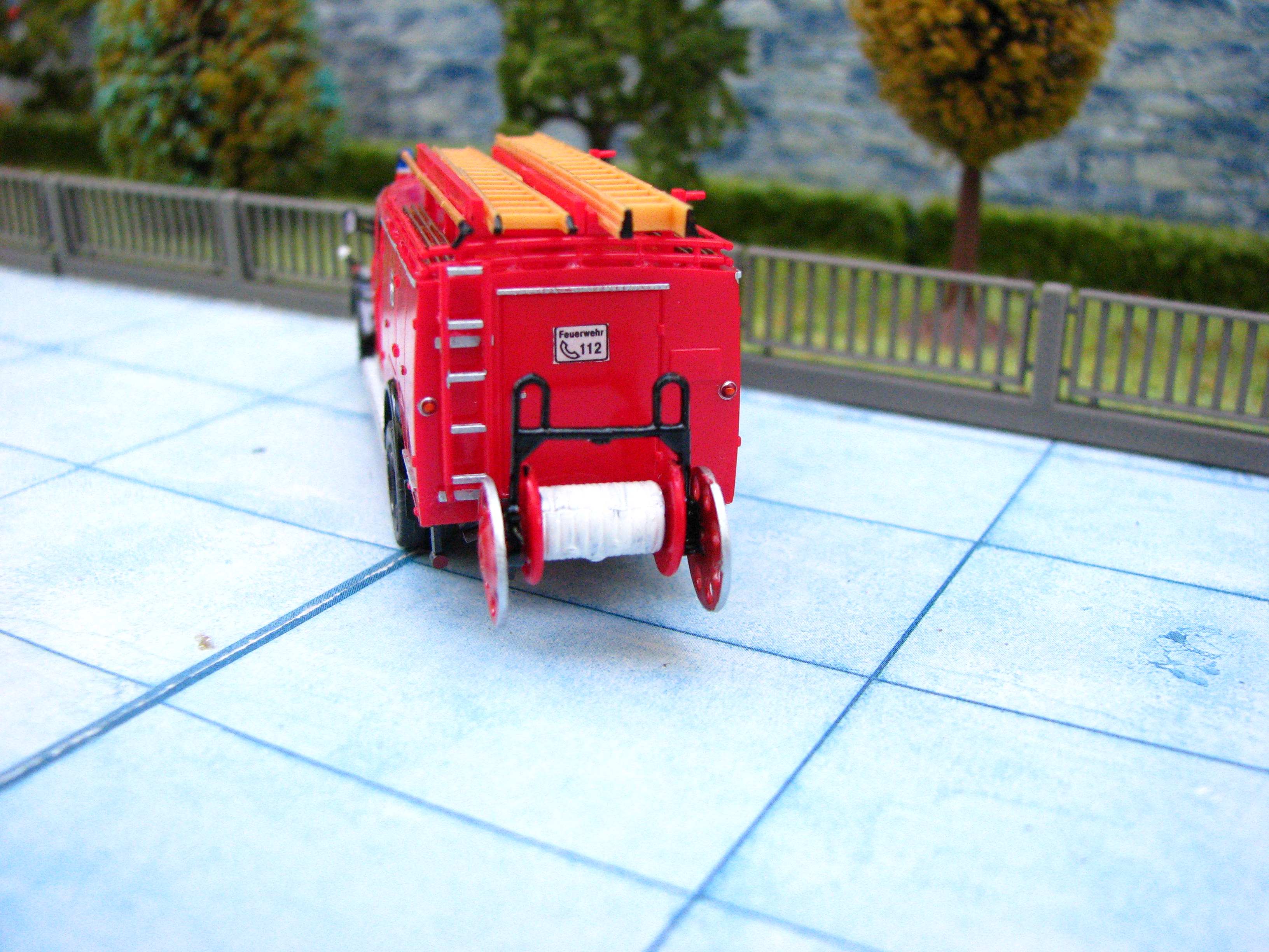 Das Modell ist eine Resteverwertung. Der Aufbau ist vom Preiser NG Tro/TLF-SW und das Fahrgestell + Kabine vom RW 1. Dazu noch etwas Dachbeladung ebenfalls Preiser sowie Farbe und Decals.