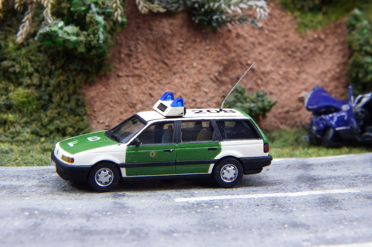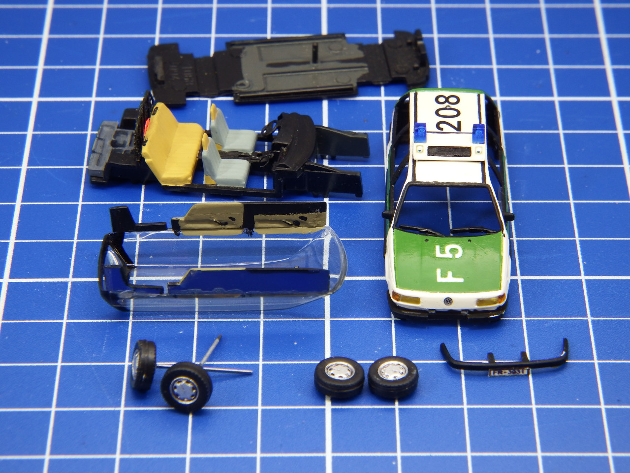 Wenn ich irgendwann mal sehr viel Lust habe, steht noch der Blaulichtbalken zur Änderung an (auch die Kfz-Kennzeichen sollten dringend durch bessere ersetzt werden). Einstweilen sieht das Modell nun so aus: