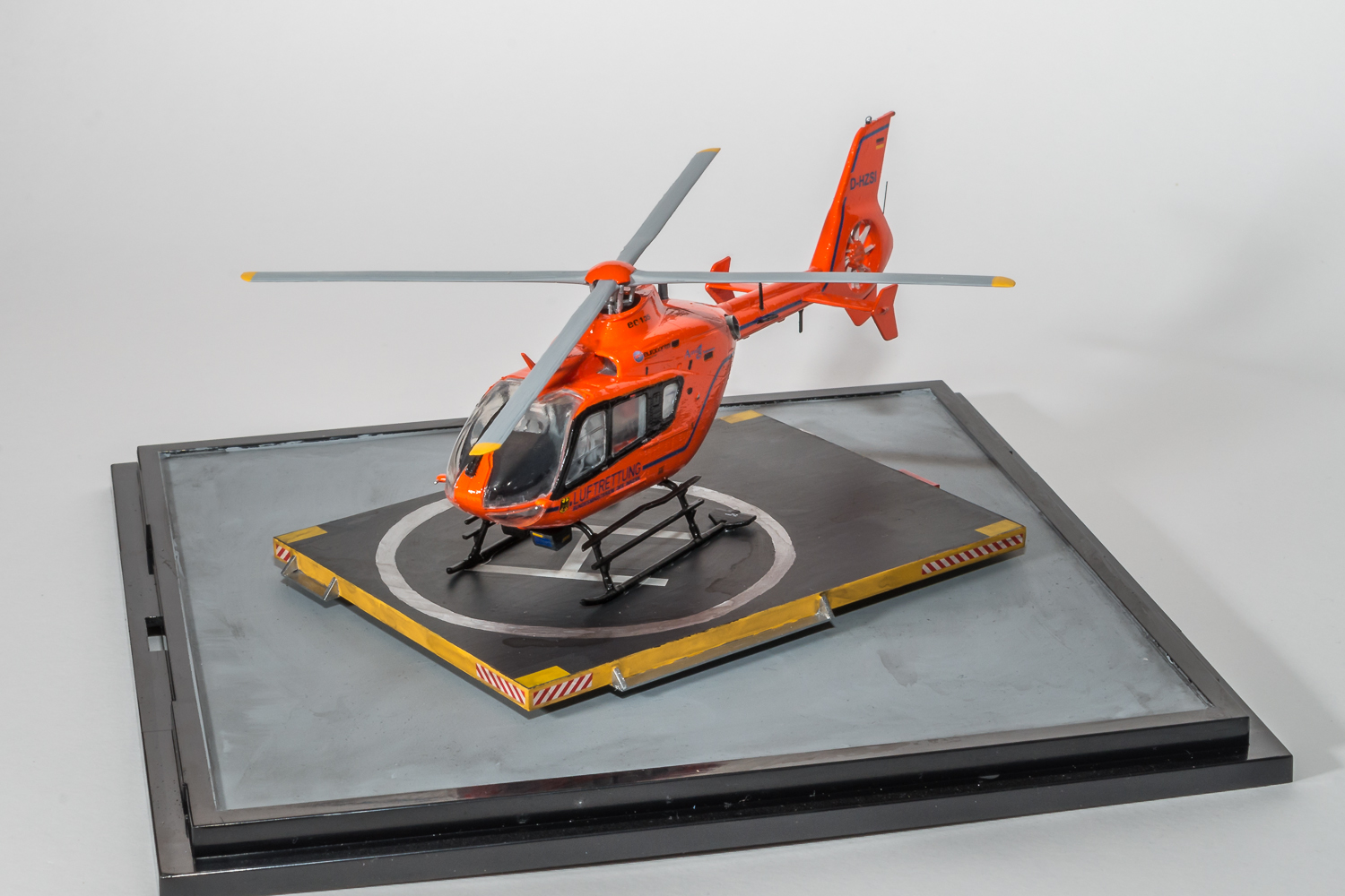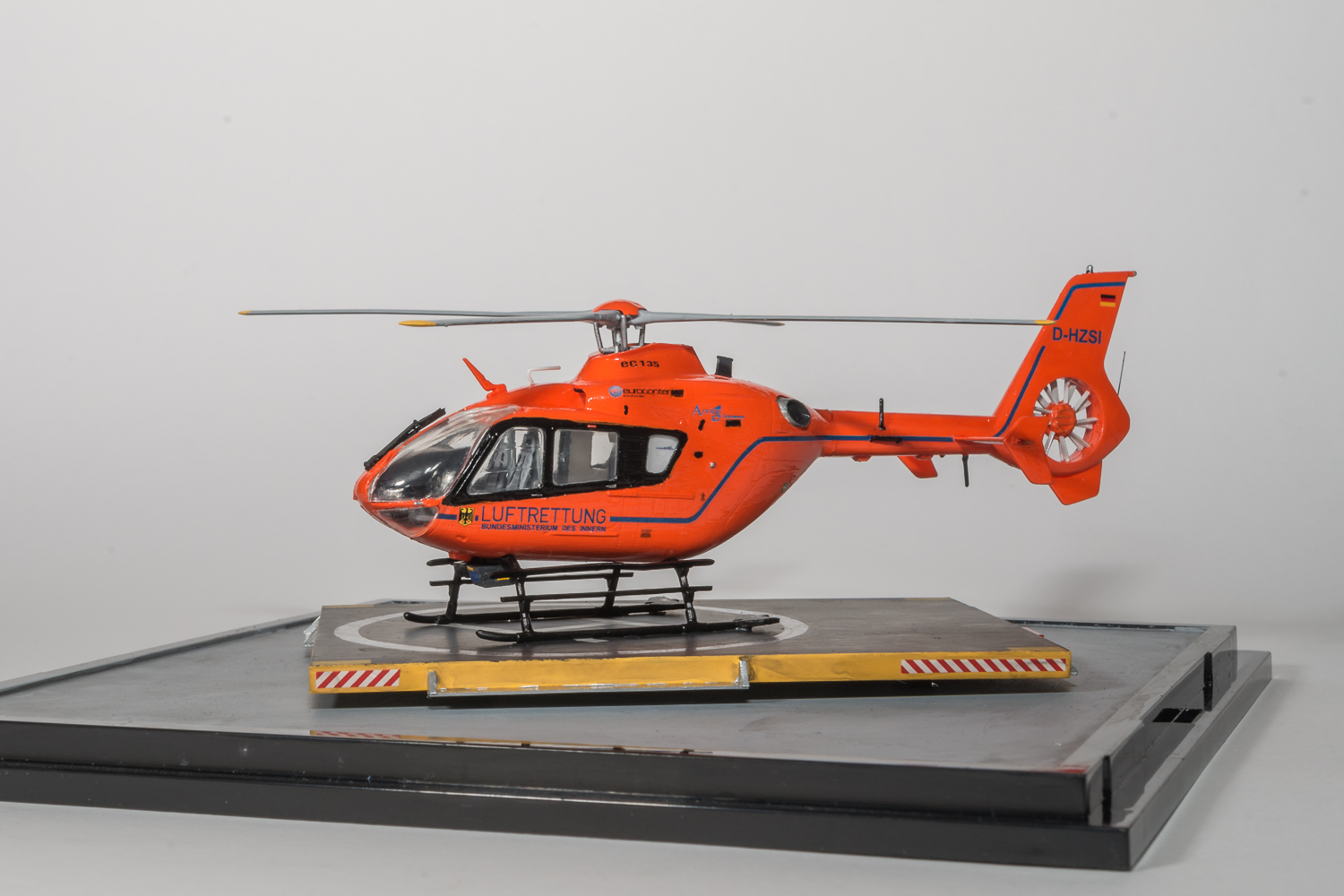 So konnte ich aus einem anderen Bausatz z.b. auf das Hohe, Typische Landegestell des EC 135 T2i zurückgreifen.