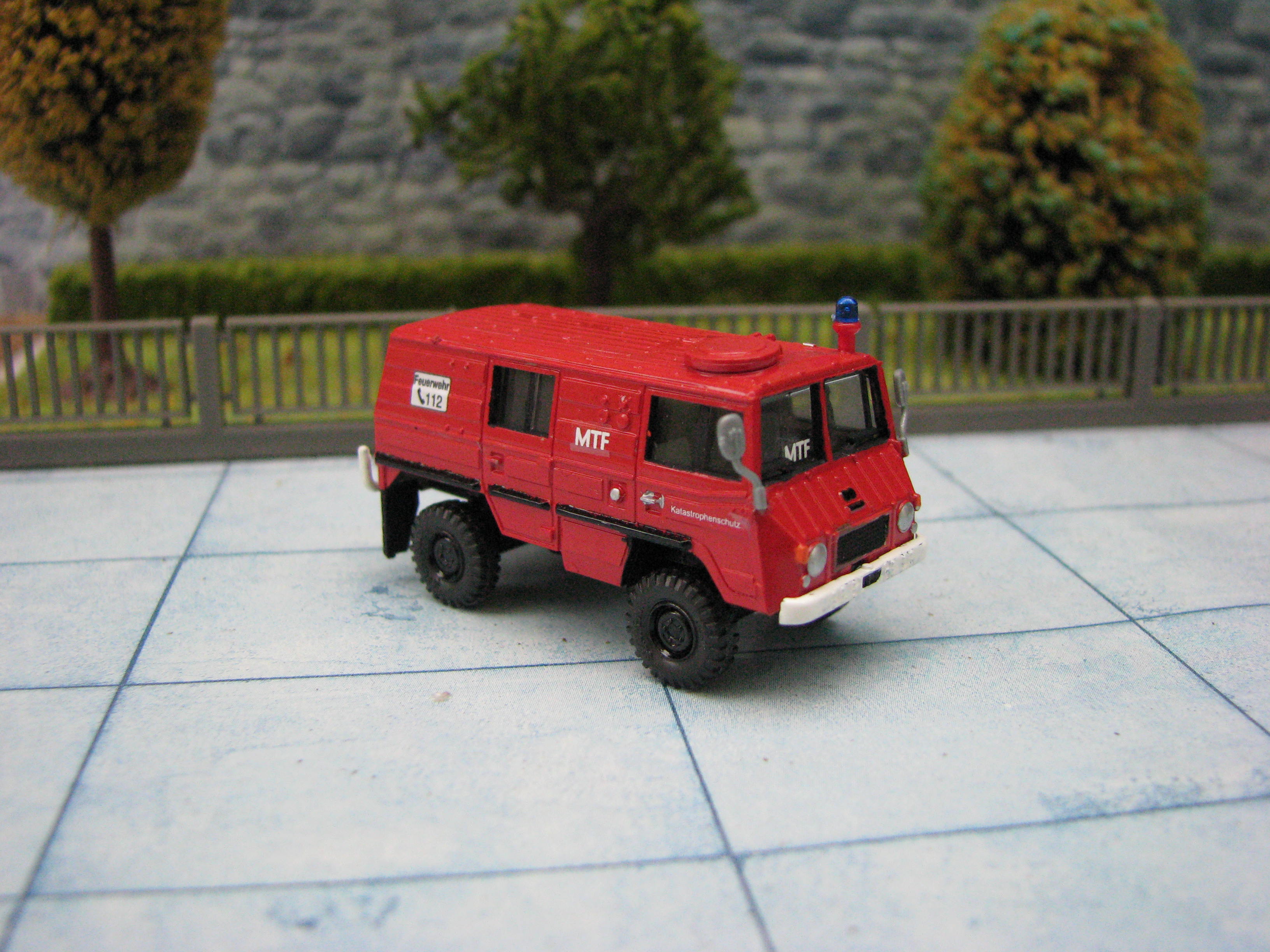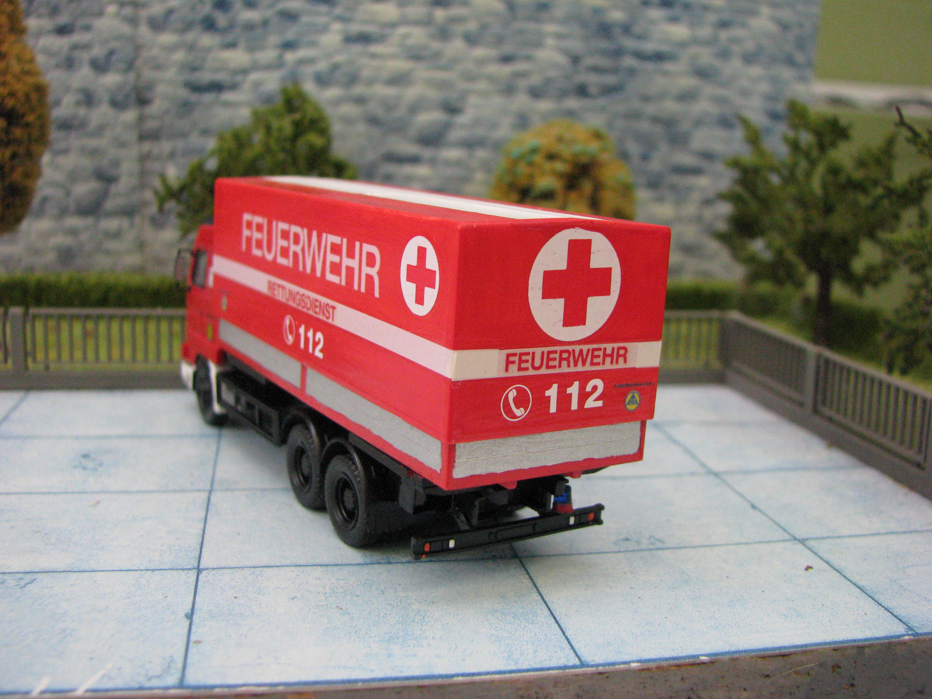 Das Modell ist ein MTW von Herpa der mit einer RTW Inneneinrichtung sowie Milchglasscheiben versehen wurde. Das Dach wurde neu lackiert und das Modell mit Decals versehen.