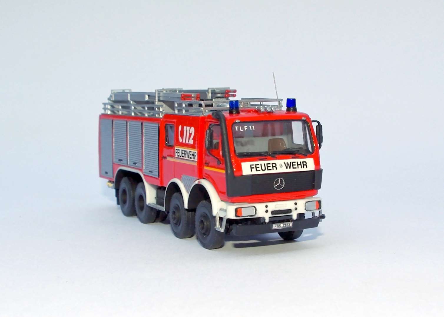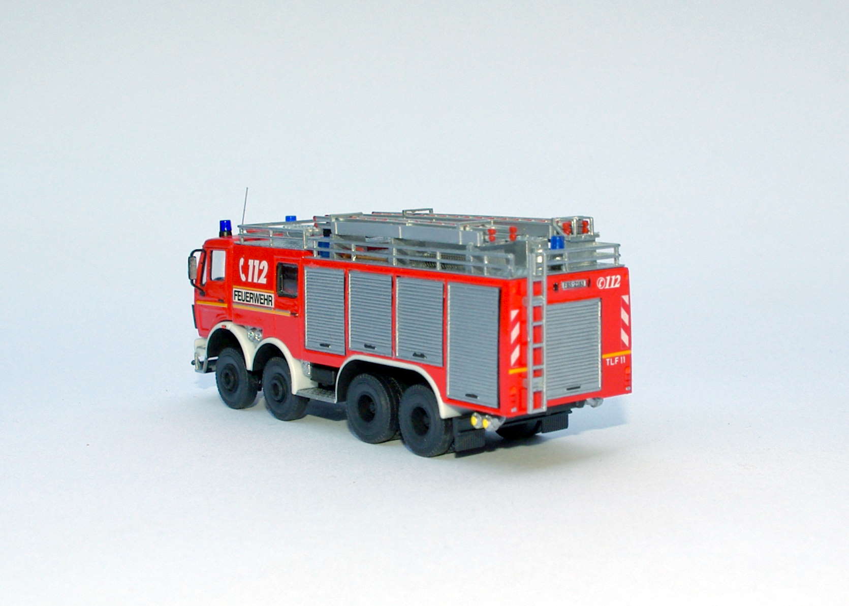 Bei dem Modell handelt es sich um das Altbekannte Kibri TLF. Das Fahrzeug wurde in Ral 3000 lackiert und das Dach, sowie die Rollos bekamen einen neuen Anstrich in Alufarbe. Das Modell wurde soweit aus der Schachtel gebaut! Am Dachaufbau wurden allerdings die Leitern durch herpa- Leitern ersetzt.