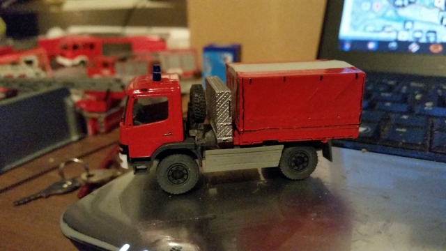 LF 16-12 der FFW Alexandersberg-Wolfsanger, Superung und Umlackierung des Busch-Modells "Feuerwehr Wentorf". Das Modell bekommt noch nach Lieferung eine Inneneinrichtung aus Preiser- und Shapeways-Teilen, unter anderem Pressluftatmer, Schere/Spreizer, Schlauchtragekörbe, hier erstmal die Bilder: