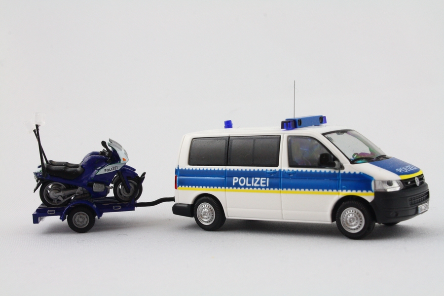 Die Modelle wurden in blau lackiert, anschließend abgeklebt und die untere Hälfte in anthrazit lackiert. Die Trennstelle wurde mit weißen Gaps noch mehr betont. Ich folge damit dem Gestaltungskonzept von http://www.polizeiautos.de für Sonder- und Großfahrzeuge der Polizei in Deutschland. Dieses findet mittlerweile (in teils abgewandelter Form) bei der Bundespolizei und bei einigen Länderpolizeien Verwendung.