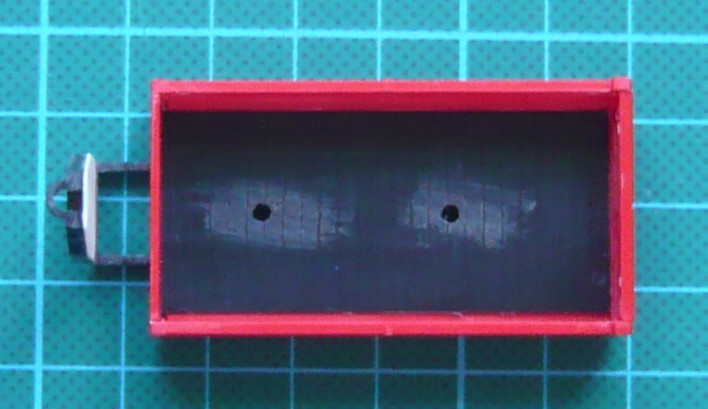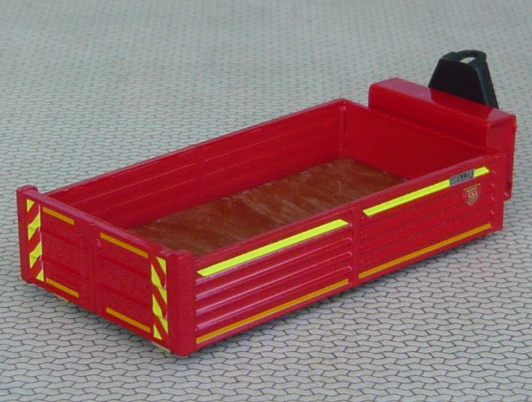 Die Innenseiten der Bordwände erhielten vorbildkonform einen Anstrich mit mattem Rot und die Ladefläche wurde zuerst mit Alu und dann mit Rostfarbe (beide von Model Master) behandelt. Anschließend wurde Alterungspulver von Artitec eingesetzt.