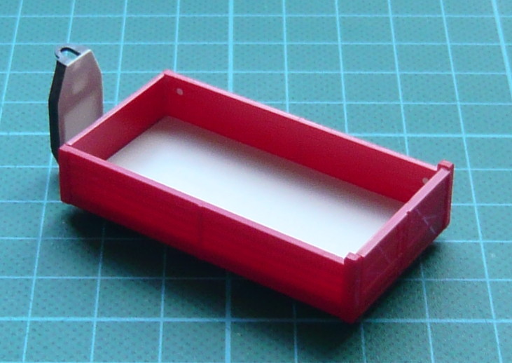 Weiterhin wurde eine Plastikplatte auf Maß gebracht um einen ebenen und durchgängigen Boden als Ladefläche zu erhalten. Durch die Konstruktion von Preiser mit den angesteckten Bordwänden ist der Eindruck eines ebenen und glatten Boden sonst nicht gegeben.