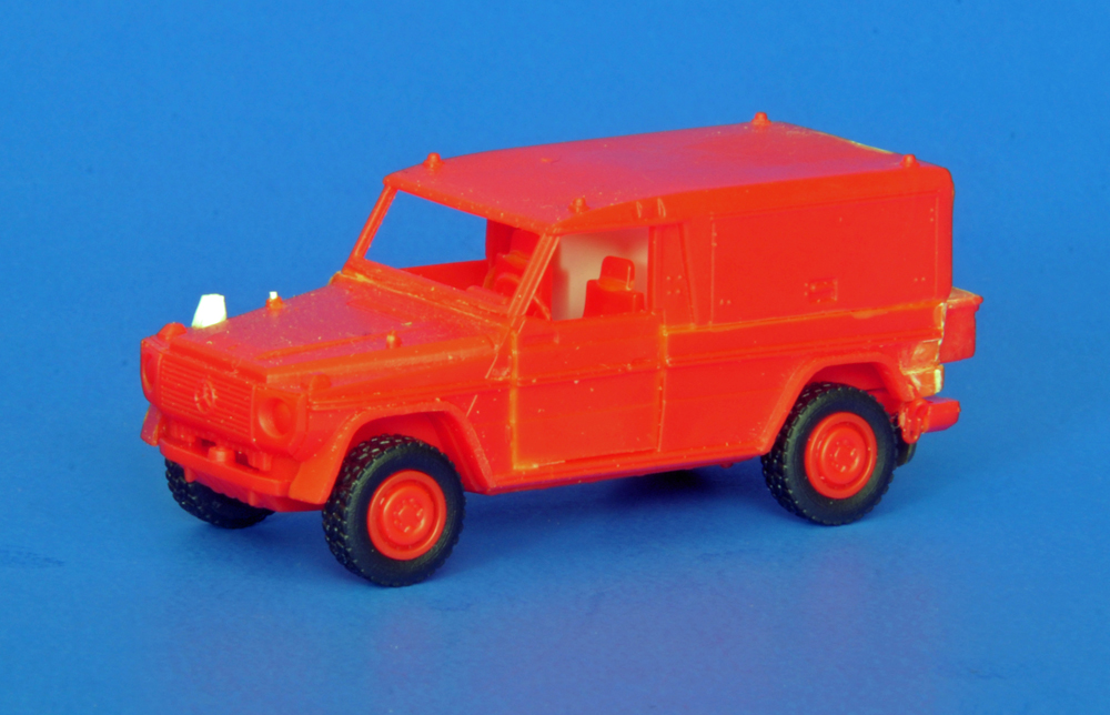 Das von Arsenal M nachgebildete Fahrgestell entspricht aber der Variante G 270 CDI mit den breiteren Kotflügeln.