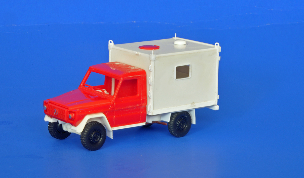 Außerdem ist dein gewähltes Vorbild ein Beispiel für den Detailvariantenreichtum der Bundeswehr-ELW, den man auch gut in verschiedenen Modellen umsetzen kann. Bei Fahrzeugen auf Truppenübungsplätzen fehlt auch schon mal das gelbe Blinklicht und zu deinem Modell habe ich auch ein Vorbildfoto gesehen mit weißen Stoßstangen und Scheinwerferumrandungen sowie ohne die gelben Markierungen. Der geneigte Modellbauer kann also durchaus mehr als ein Modell erstellen.