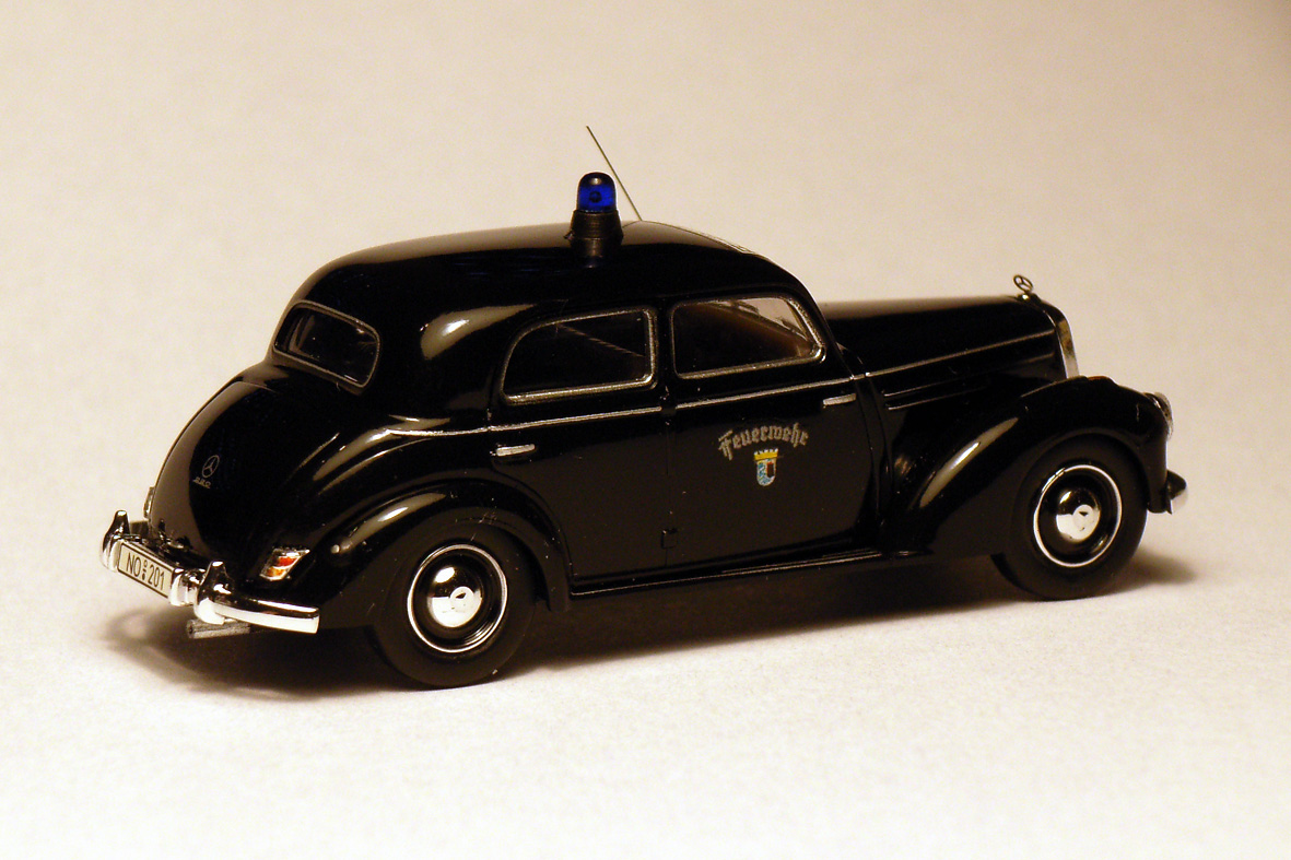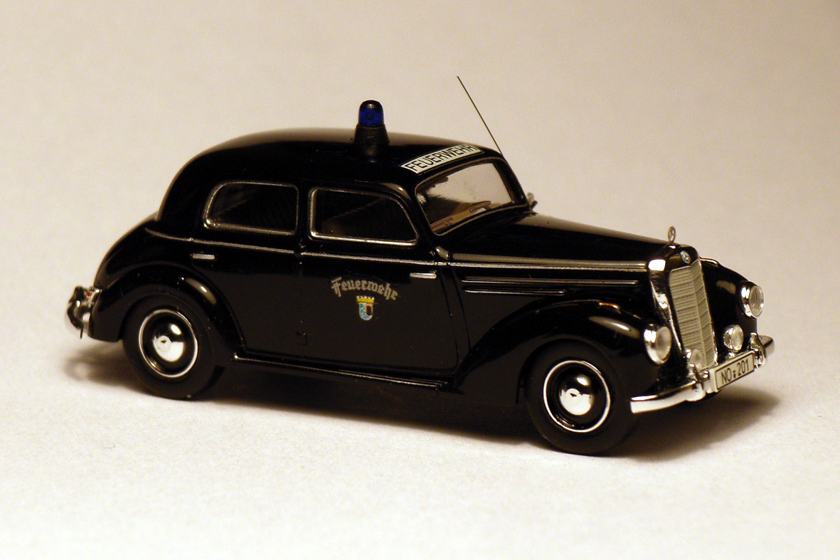 Der KDW 1 des Ltd. BD (auch "Chefauto" genannt); ein MB 220, Bj. 1954, vormals Dienstwagen des Oberbürgermeisters, ab 1958 der Branddirektion als Kommandowagen zugeteilt und das erste Fahrzeug der Feuerwehr mit "neuen" Kennzeichen!